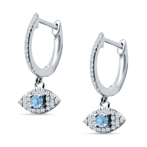 Evil Eye Huggie Hoop Earring Ruby CZ 925 Sterling Silver Wholesale 20mm
