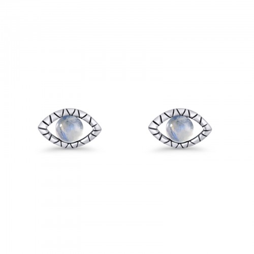 Eyelashes Eye Stud Earring 4.8mm Moonstone 925 Sterling Silver Wholesale