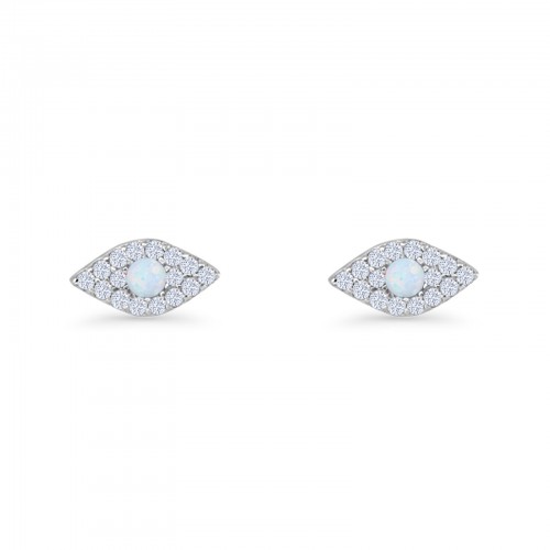 Marquise Halo Evil Eye Stud Earring Lab Created White Opal 925 Sterling Silver Wholesale