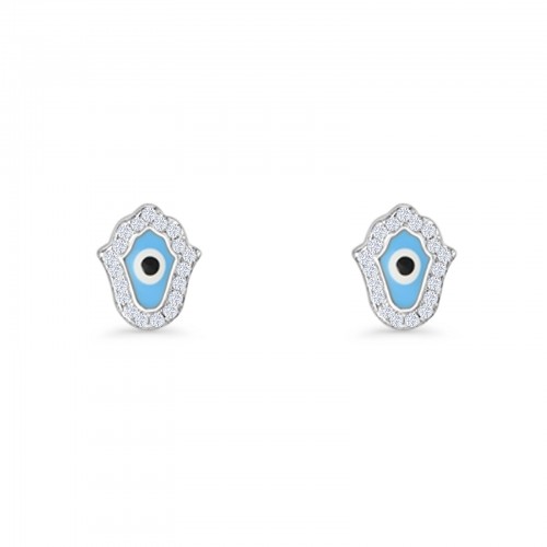 Minimalist 5.2mm Evil Eye Stud Earrings Cubic Zirconia 925 Sterling Silver Wholesale