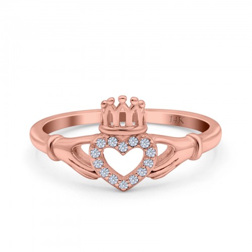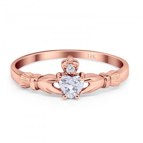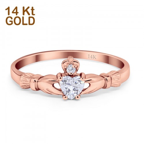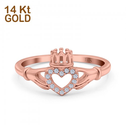 14K Rose Gold Claddagh Heart Promise Bridal Simulated CZ Wedding Engagement Ring Size 7 14K Gold