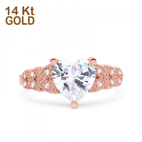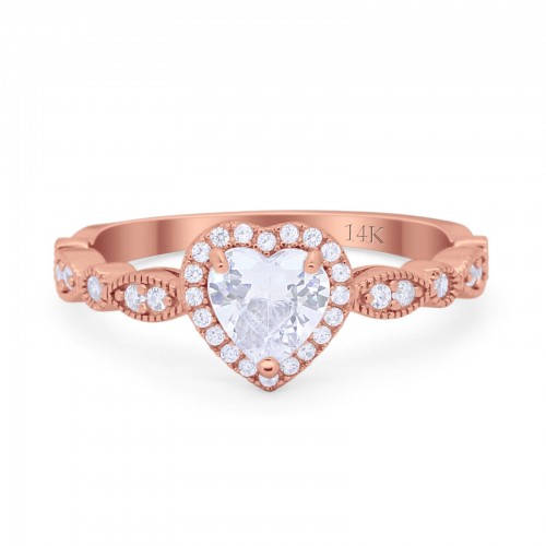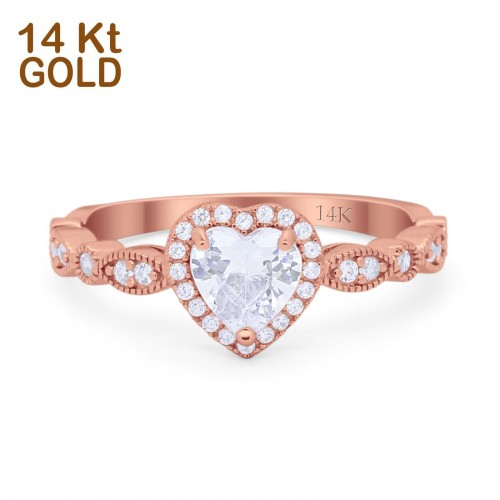 14K Rose Gold Art Deco Heart Promise Wedding Engagement Ring Simulated CZ Size-7 14K Gold