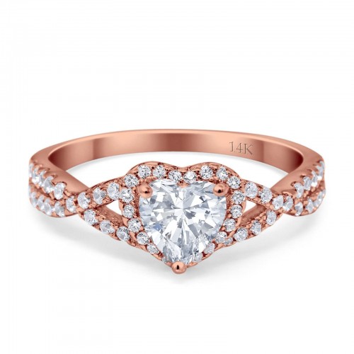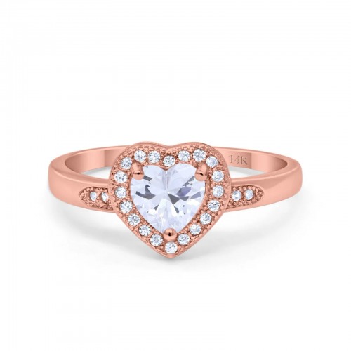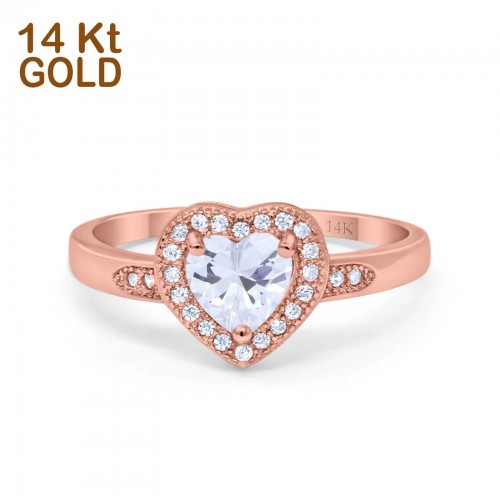 14K Rose Gold Halo Heart Promise Simulated CZ Wedding Engagement Ring Size 7 14K Gold