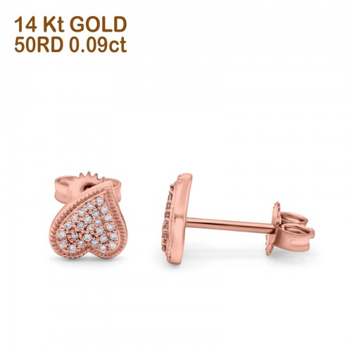 14K Rose Gold Half Eternity Heart Ring Wedding Engagement Round Pave Band Simulated CZ Size 7