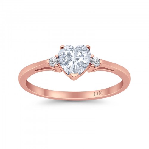 14K Rose Gold Heart Promise Bridal Simulated CZ Wedding Engagement Ring Size-7 14K Gold