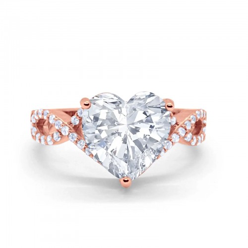 14K Rose Gold Art Deco Heart Promise Twisted Shank Simulated Cubic Zirconia Wedding Ring Wholesale 7