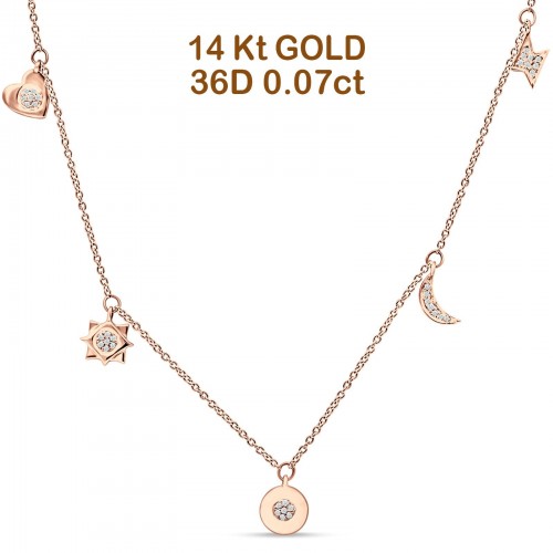 Dangling Moon Star Heart Diamond Necklace 14K Rose Gold 0.07ct Wholesale