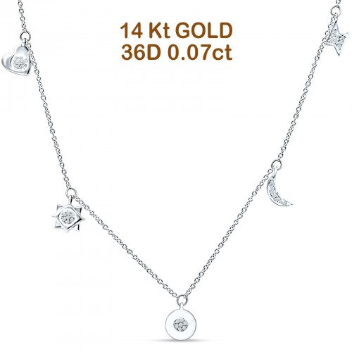 Dangling Moon Star Heart Diamond Necklace 14K White Gold 0.07ct Wholesale