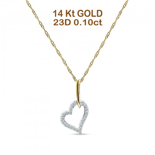 Diamond Heart Pendant Necklace 14K Two Tone Gold 0.10ct Wholesale