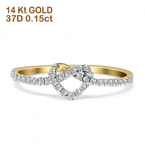 Diamond Heart Knot Ring Half Eternity 14K Yellow Gold 0.15ct Wholesale 6.5