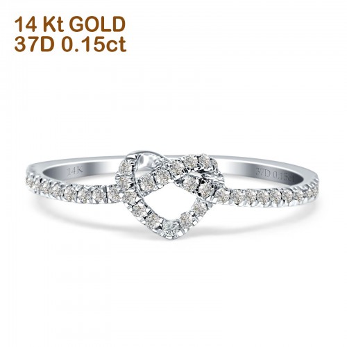 Diamond Heart Knot Ring Half Eternity 14K White Gold 0.15ct Wholesale 6.5