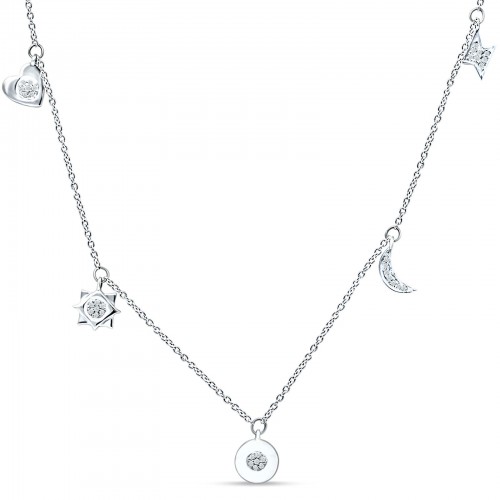 Dangling Moon Star Heart Diamond Necklace 14K White Gold 0.07ct Wholesale