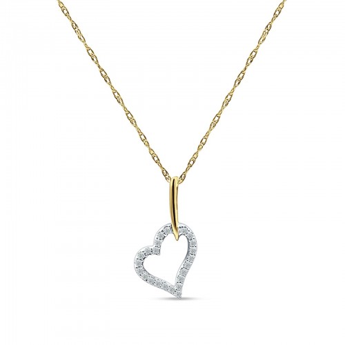 Diamond Heart Pendant Necklace 14K Two Tone Gold 0.10ct Wholesale