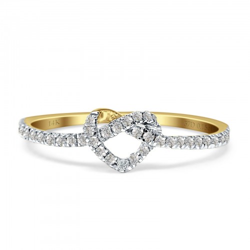 Diamond Heart Knot Ring Half Eternity 14K Yellow Gold 0.15ct Wholesale 6.5