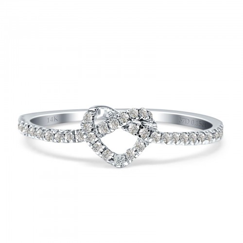 Diamond Heart Knot Ring Half Eternity 14K White Gold 0.15ct Wholesale 6.5