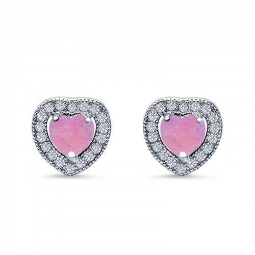 Halo Heart Engagement Lab Created Pink Opal Earrings 925 Sterling Silver