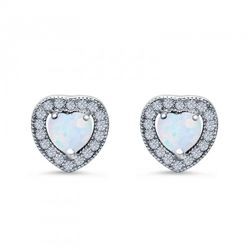 Halo Heart Engagement Lab Created White Opal Earrings 925 Sterling Silver
