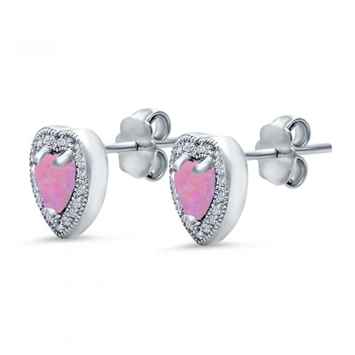 Halo Heart Engagement Lab Created Pink Opal Earrings 925 Sterling Silver