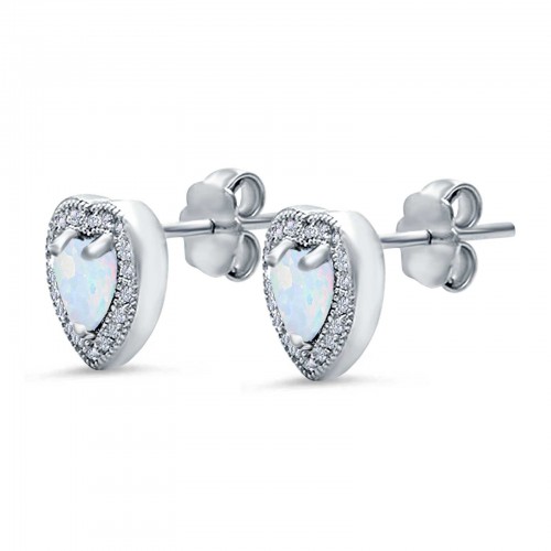 Halo Heart Engagement Lab Created White Opal Earrings 925 Sterling Silver