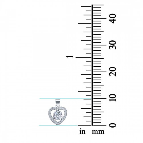 Heart Charm Pendant Simulated Cubic Zirconia 925 Sterling Silver (10mm)