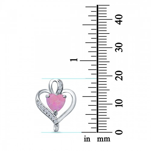 Heart Charm Pendant Lab Created Pink Opal & Simulated CZ 925 Sterling Silver