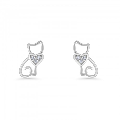 Heart Cat Stud Earring Cubic Zirconia 925 Sterling Silver Wholesale