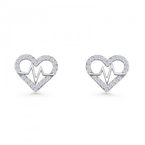 Heart Beat Wave Stud Earring Cubic Zirconia 925 Sterling Silver Wholesale