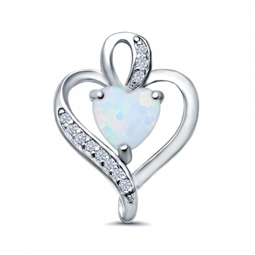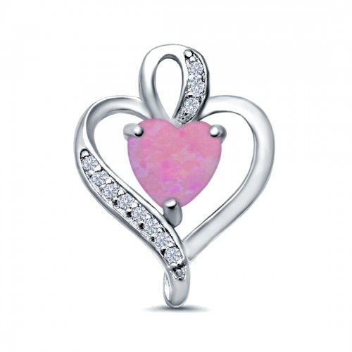 Heart Charm Pendant Lab Created Pink Opal & Simulated CZ 925 Sterling Silver