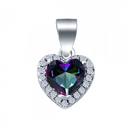 Heart Charm Pendant Simulated Rainbow CZ 925 Sterling Silver (11mm)