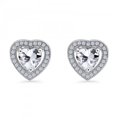 Heart Halo Stud Earrings Cubic Zirconia 925 Sterling Silver Wholesale