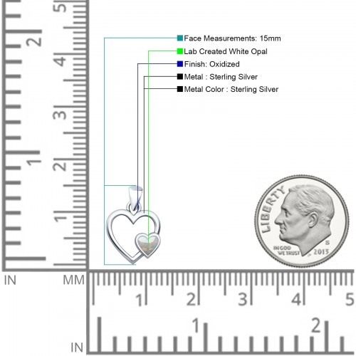 Heart Lab Created White Opal Oxidized Promise Pendant 925 Sterling Silver