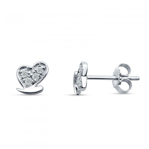 Heart Flying Bird Diamond Stud Earring 14K White Gold 0.08ct Wholesale