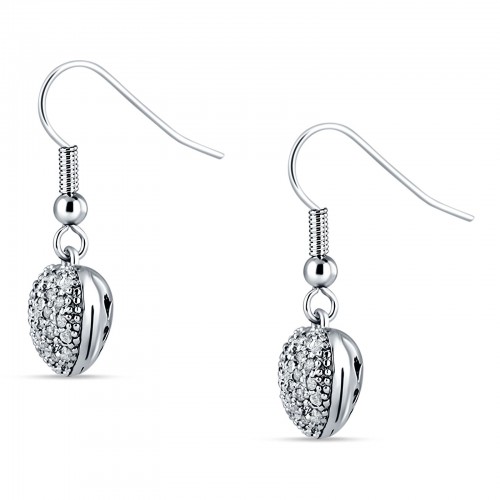 Heart Drop Fish-Hook Earrings Cubic Zirconia 925 Sterling Silver Wholesale 10.8mm