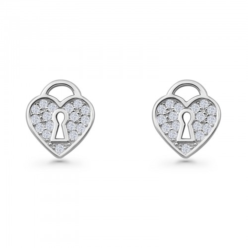 Heart Lock Stud Earrings Cubic Zirconia 925 Sterling Silver Wholesale