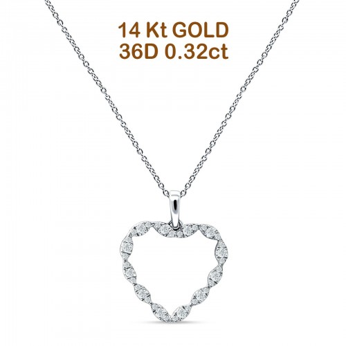 Heart Necklace Diamond Pendant 14K White Gold 0.32ct Wholesale