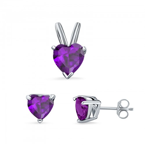 Heart Shape Jewelry Set Pendant Earring Simulated Amethyst Cubic Zirconia 925 Sterling Silver