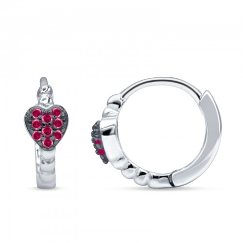 Heart Shaped Two Tone Ruby CZ Beaded Hoop Earring 925 Sterling Silver Wholesale 12.7mm