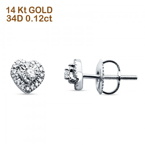 Heart Shaped Diamond Stud Earring Cluster 14K White Gold 0.12ct Wholesale