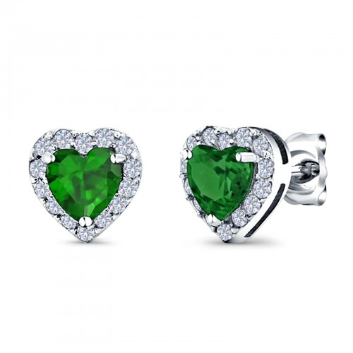 Heart shape Stud Earrings Wedding Simulated Green Emerald CZ 925 Sterling Silver (10mm)
