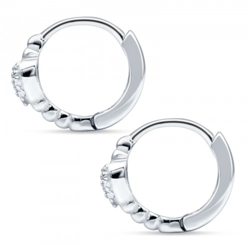 Heart Shaped Cubic Zirconia Beaded Huggie Hoop Earring 925 Sterling Silver Wholesale 12.7mm
