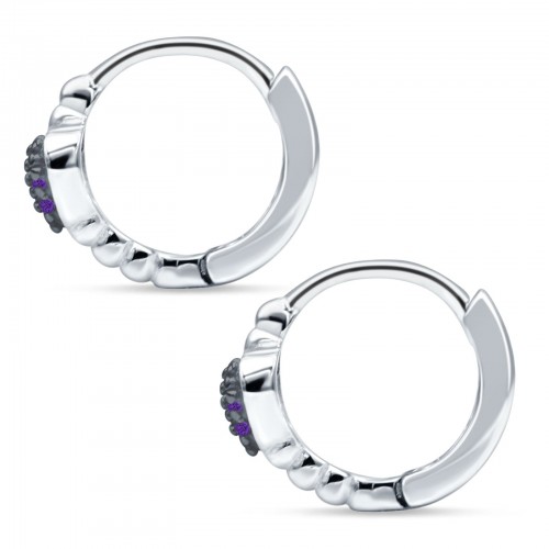Heart Shaped Two Tone Amethyst CZ Beaded Hoop Earring 925 Sterling Silver Wholesale 12.7mm