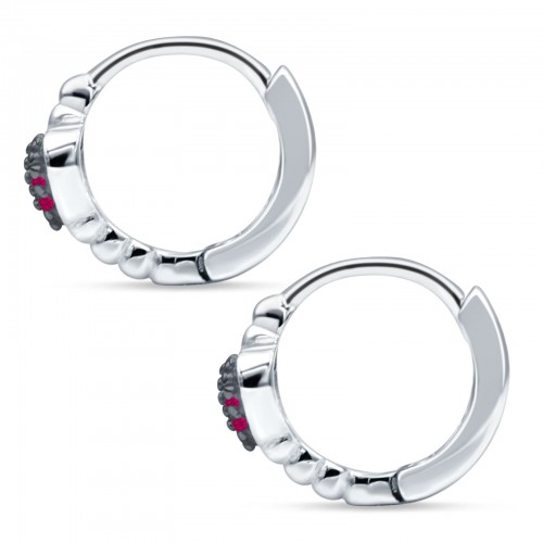 Heart Shaped Two Tone Ruby CZ Beaded Hoop Earring 925 Sterling Silver Wholesale 12.7mm