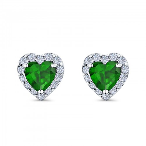 Heart shape Stud Earrings Wedding Simulated Green Emerald CZ 925 Sterling Silver (10mm)