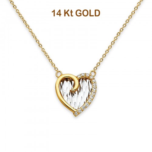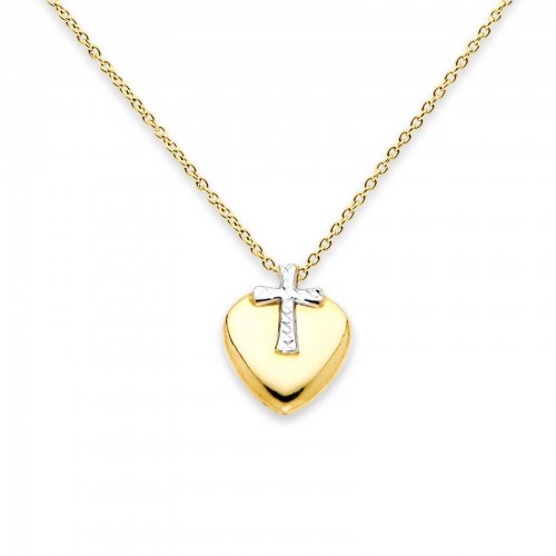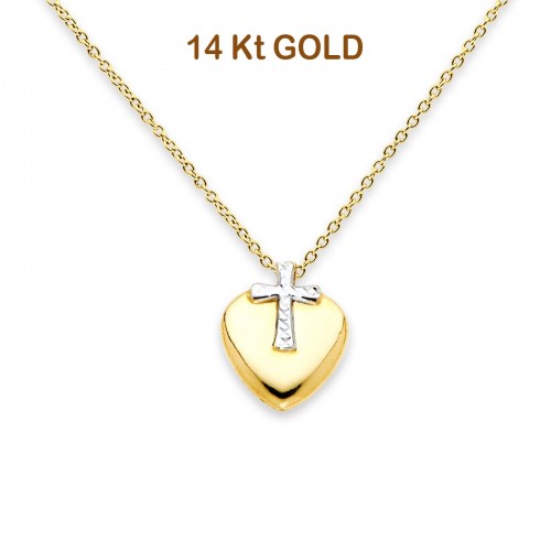 14K Two Tone Gold Cross Heart Necklace 17 + 1 Inches Extension