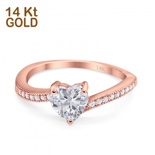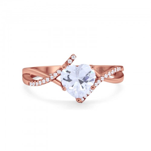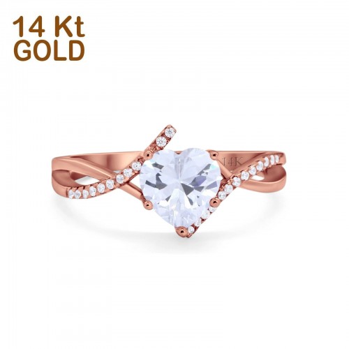 14K Rose Gold Twisted Heart Shank Promise Simulated CZ Wedding Engagement Ring Size 5 14K Gold
