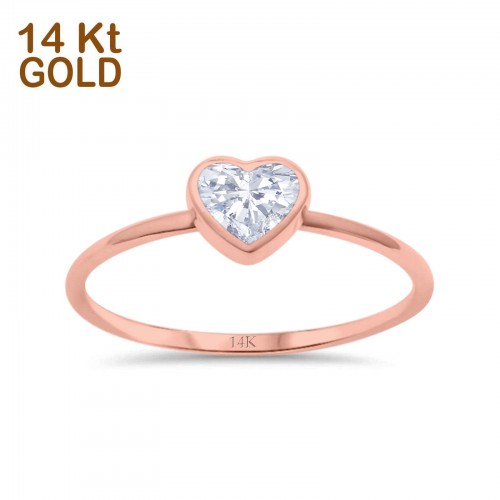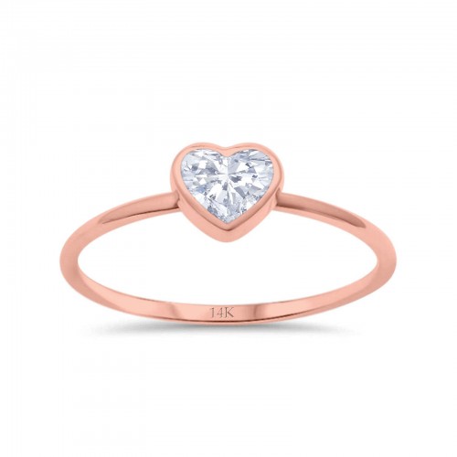 14K Rose Gold Heart Promise Ring Simulated Cubic Zirconia Size-7 14K Gold