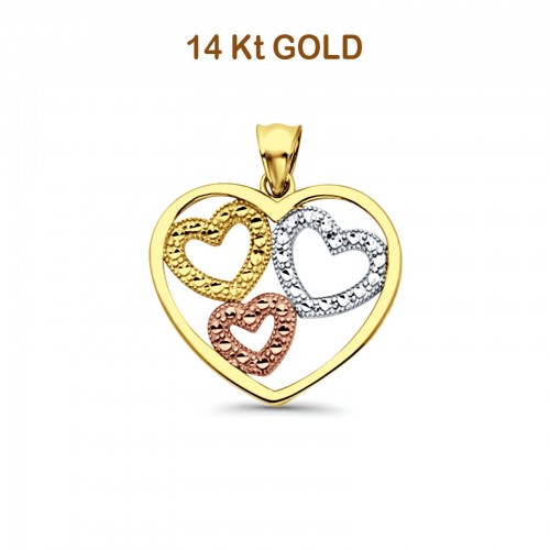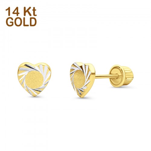 14K Two Tone Gold 5mm Heart Diamond Cut Stud Earrings with Screw Back