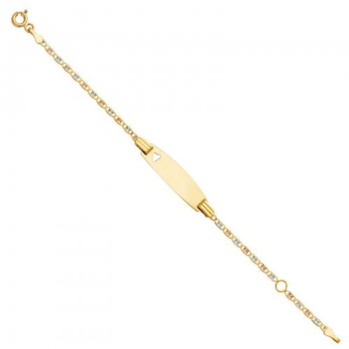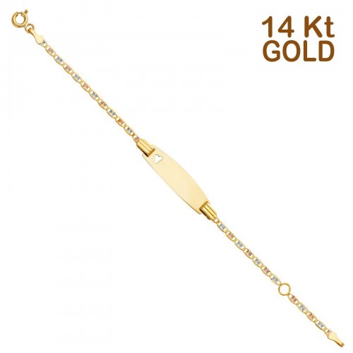 14K Tri Color Gold Valentino Star DC Oval ID with Heart Bracelet Chain 5″ + 1″ Extension