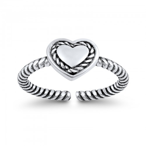 Heart Toe Ring Twisted Band Adjustable 925 Sterling Silver (6mm)