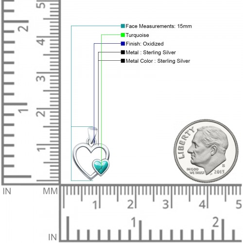 Heart Turquoise Oxidized Promise Pendant 925 Sterling Silver